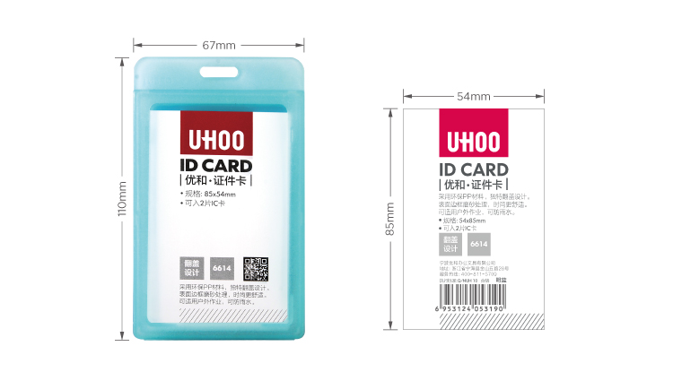 UHOO 6614 PP Material Vertical ID Card Holder Double Side Visible