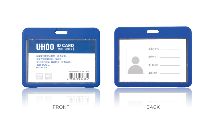UHOO 6637 Horizontal ID Card Holder Double Sides Visible